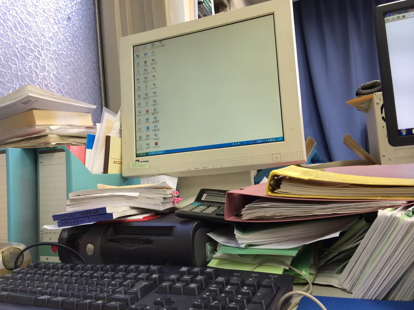 販売のPCで、販売の事務処理が出来ないので、販売のモーセ鈴木さんは、私の席の会計のXPのPCで処理をすることに。