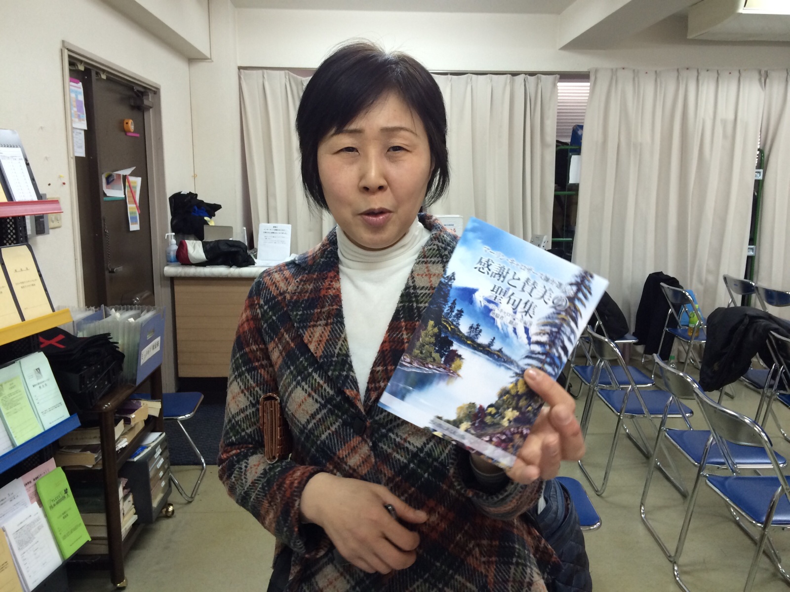 お昼ご飯を買いに行く大野さん。 カメラを向けたらなぜか、手に冊子。(笑) ミカエル
