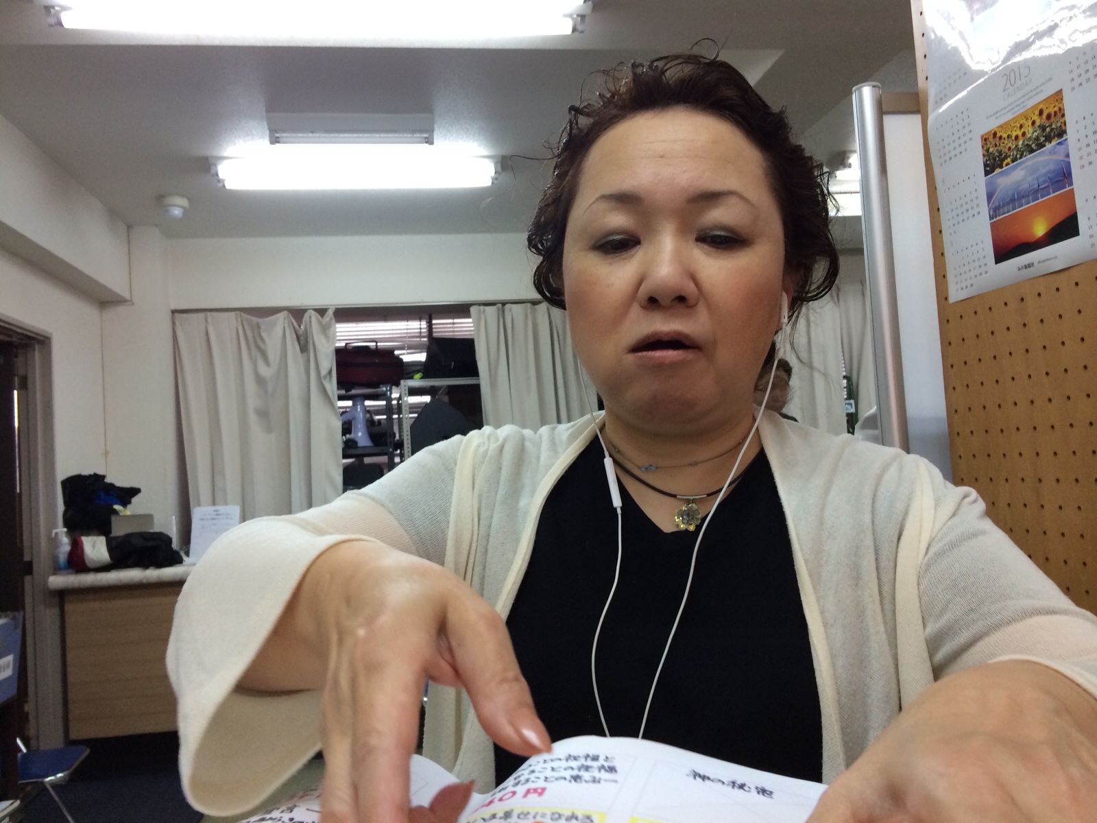イスラエル真理子さんです。チョコ食べてます。 今日もキラキラ。首元が。 ミカエル