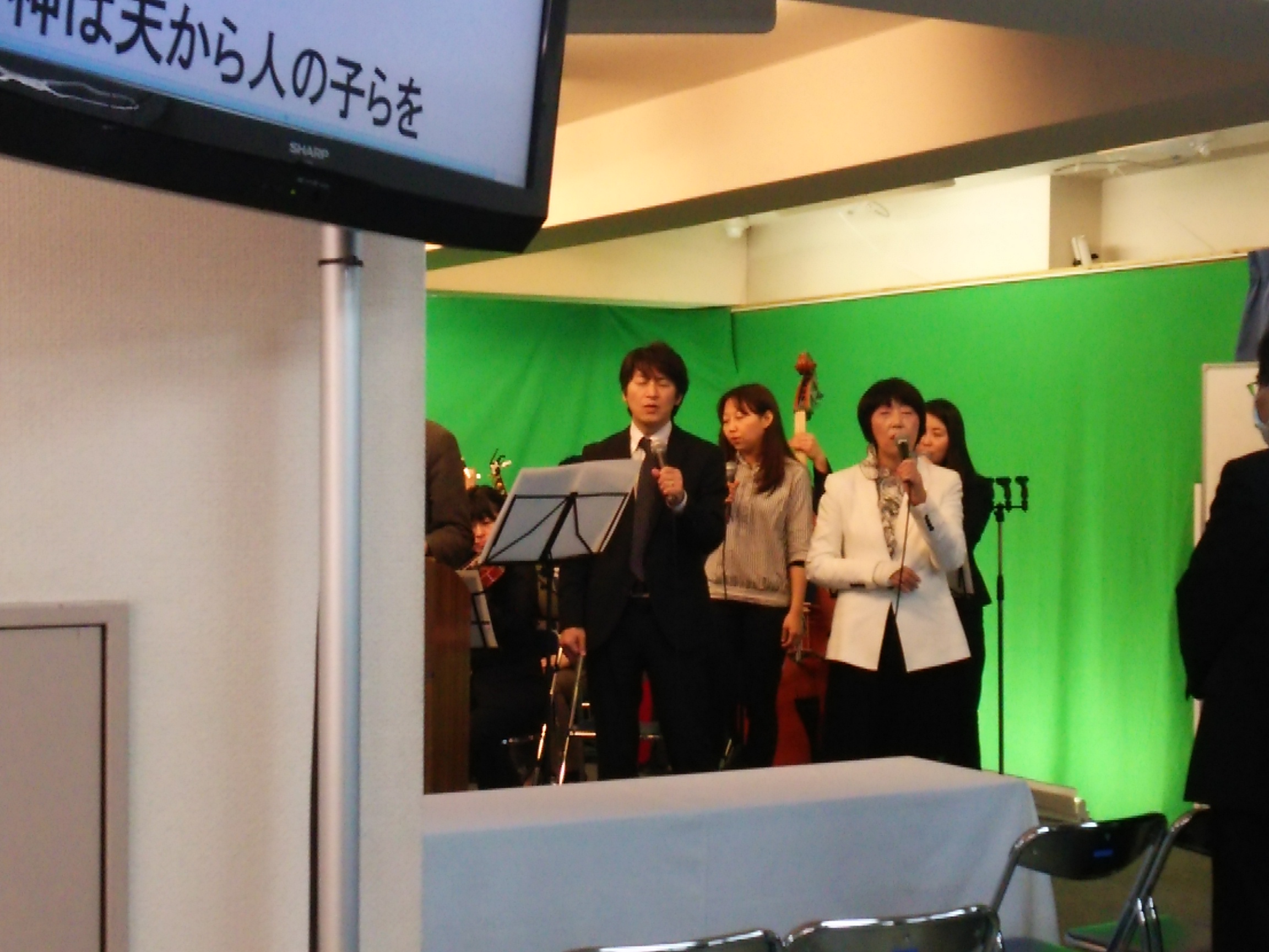雲虹の責任者の永藤さん、今日は牧師として礼拝で賛美を導いています。 沖縄エルサレム