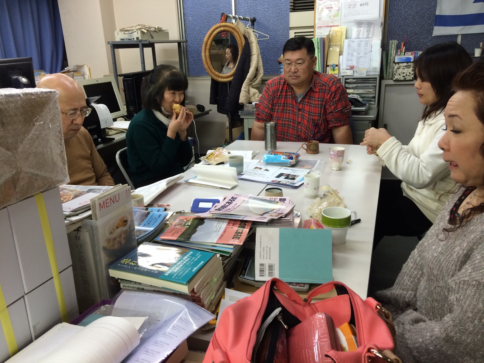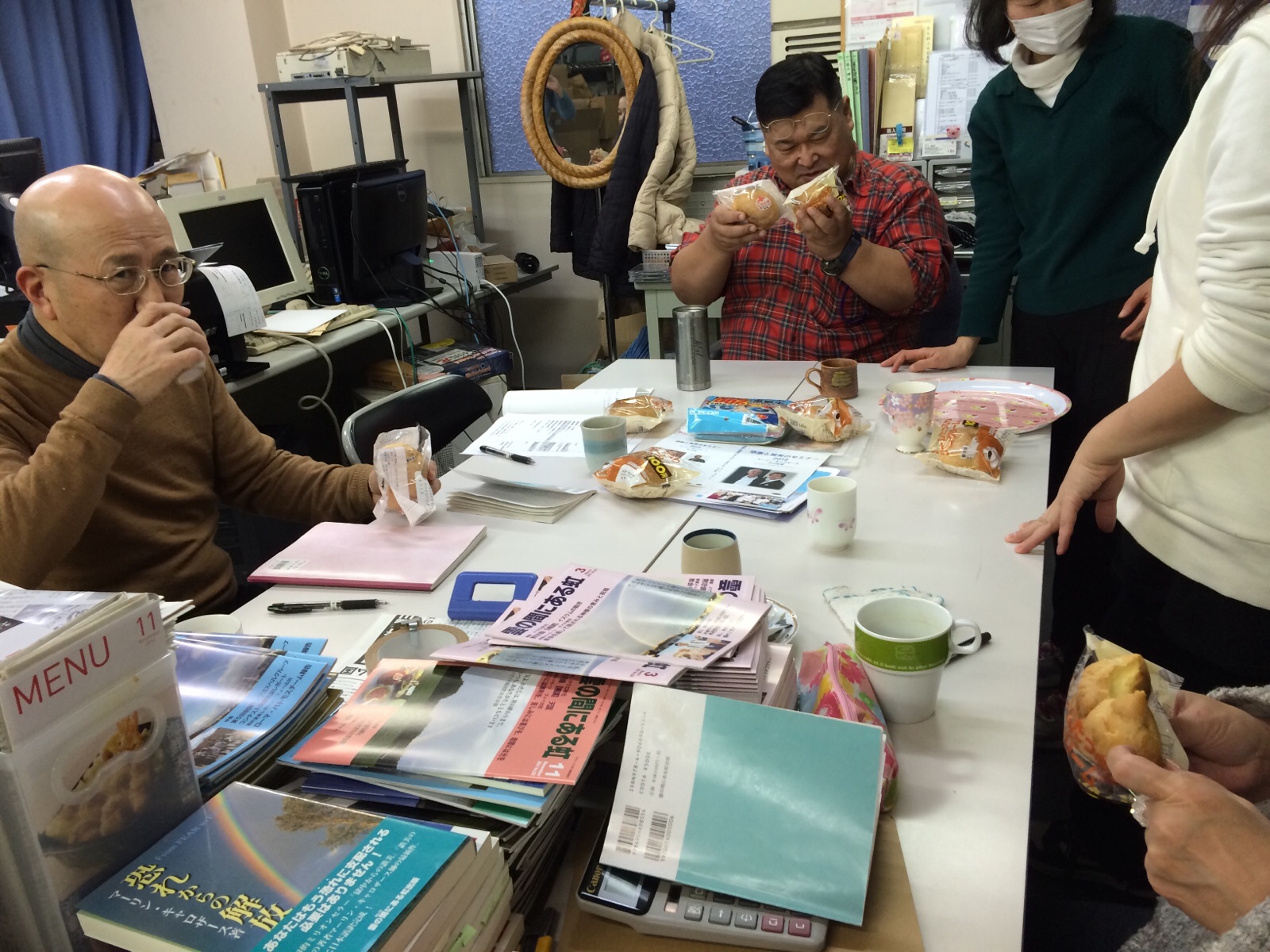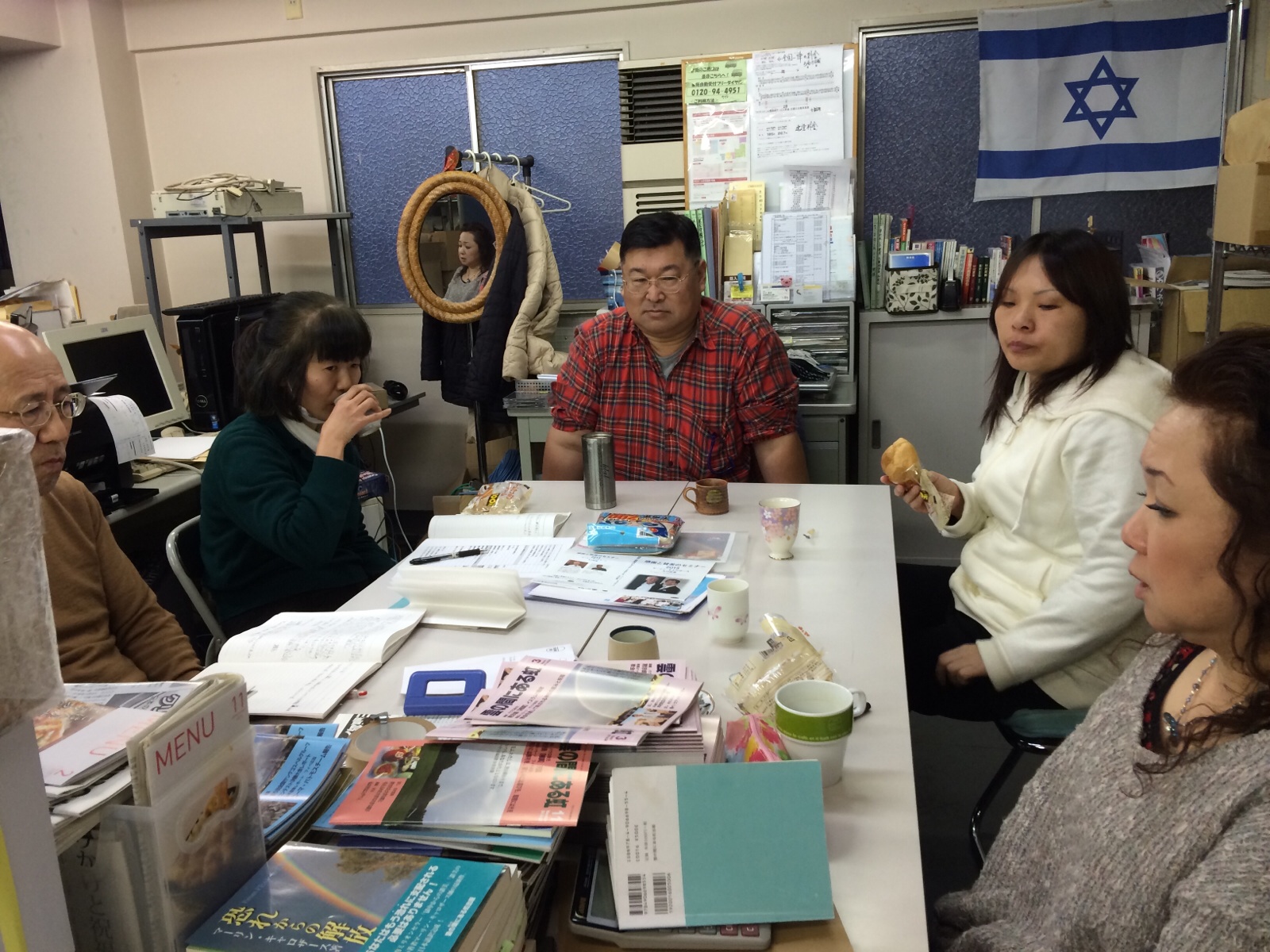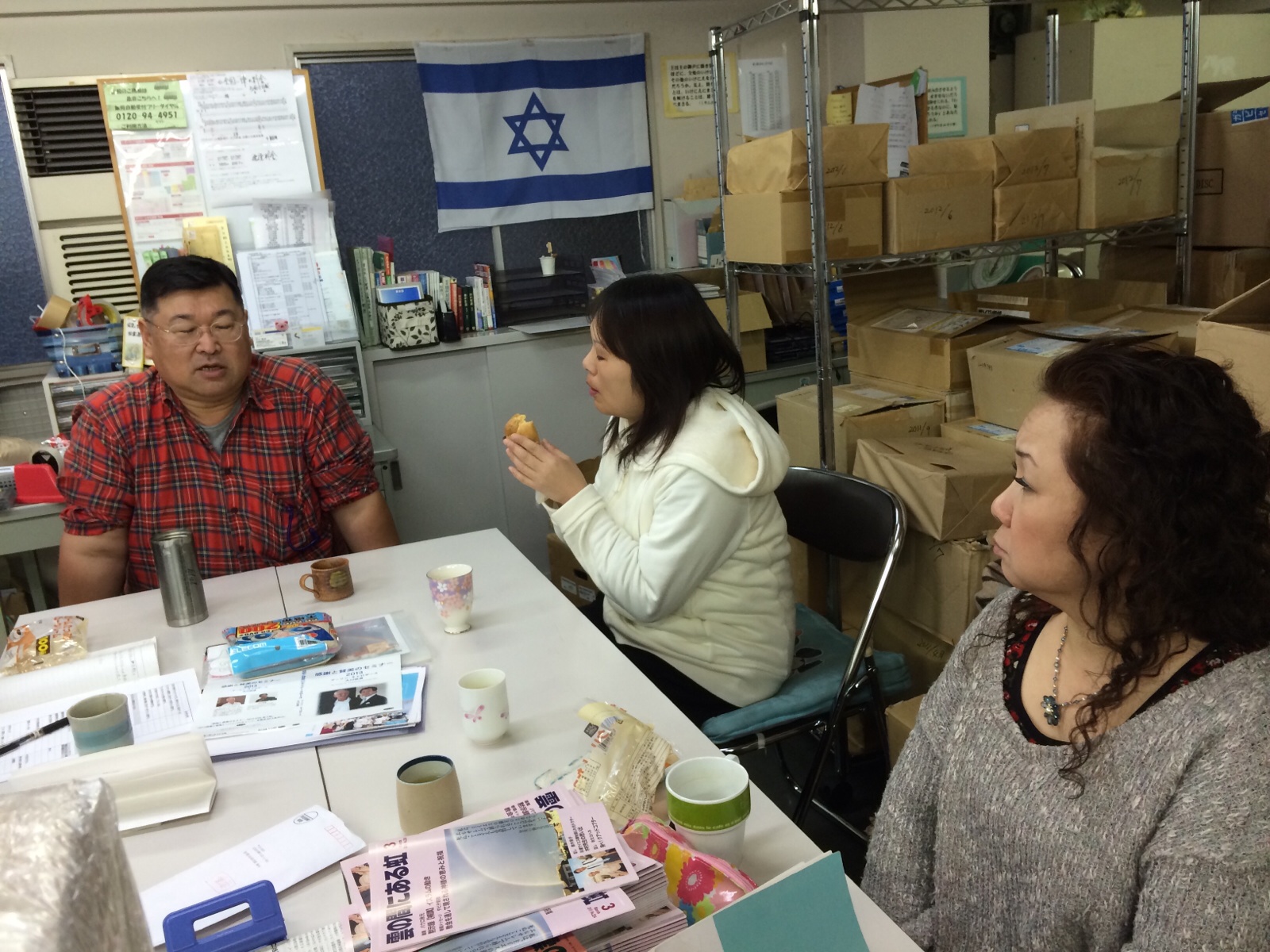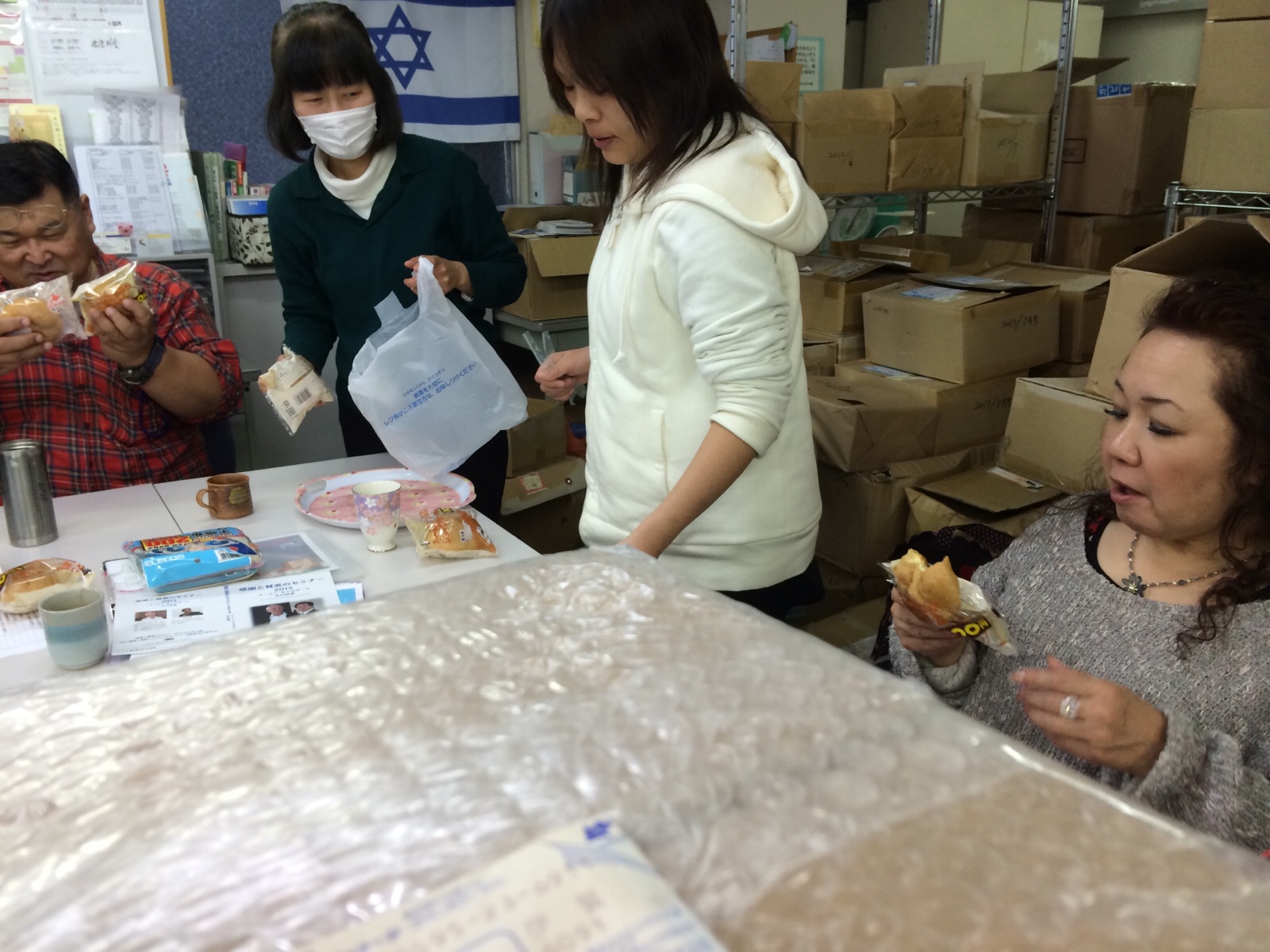 ミーティングに来られる際にはいつもシュークリームを持って来てくださいます。イスラエル真理子さん。 写真は、2月のミーティング。