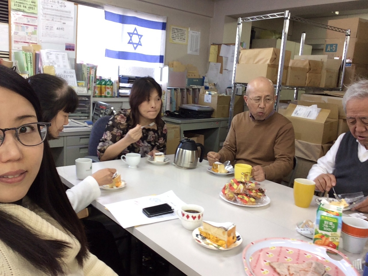 皆でケーキを食べてます。 (日本教会史担当 横尾)