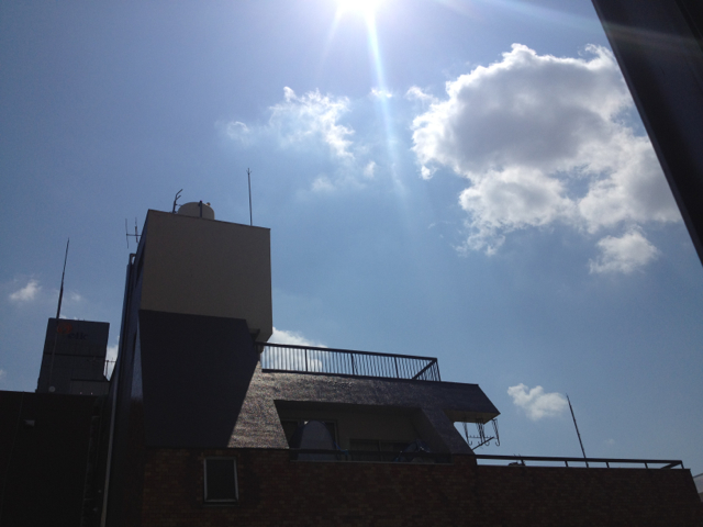 雲の間にある虹出版の事務所です。よく晴れて洗濯日和ですね~。