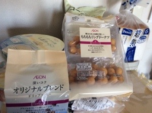 午後から雨が降るようなので、早めに買い出しに行ってきました。近くにイオンがあるので助かります。地震のための備蓄も。