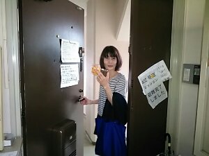 白馬キャンプの祈り会が、おわり、千多さんが、帰ります。おみやげに、おせんべいをあげました。千多さんも、キャンプ中は、祈り部門だけでなく、看護係としても、いつもフル稼働です。