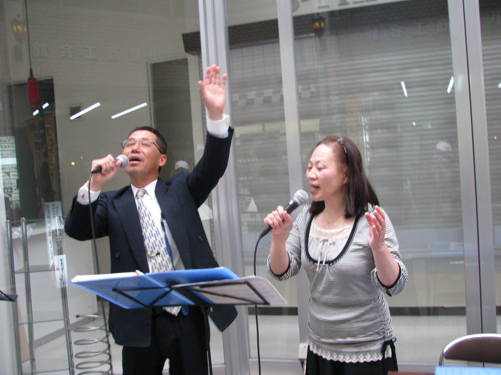 「いっしょに歌いませんか?」と声をかけると、自転車を横に止められてきて下さり、いっしょに「上を向いて歩こう」「ふるさと」を歌いました。