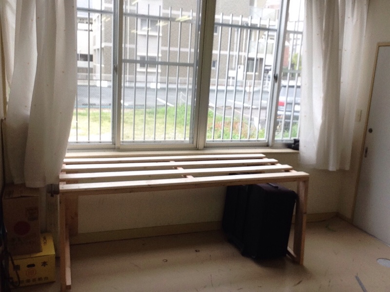 会堂で荷物棚を作りました!