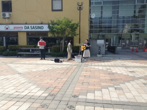 これから路上ライブします。風が…強い!感謝します。 聖なる神の都エルサレム教会(弘前)