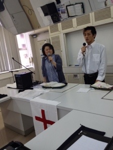 エステル毛内牧師のメッセージをK兄が通訳するのですが、この時が一番姿勢が良いです(*^◯^*)