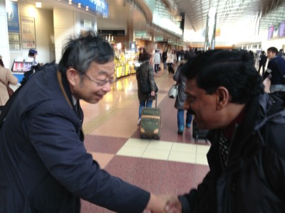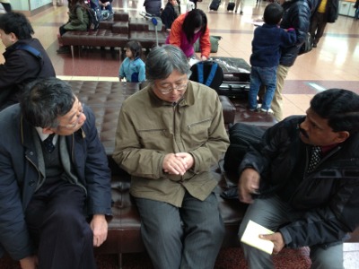 空港に到着し、秋元牧師を探してます!