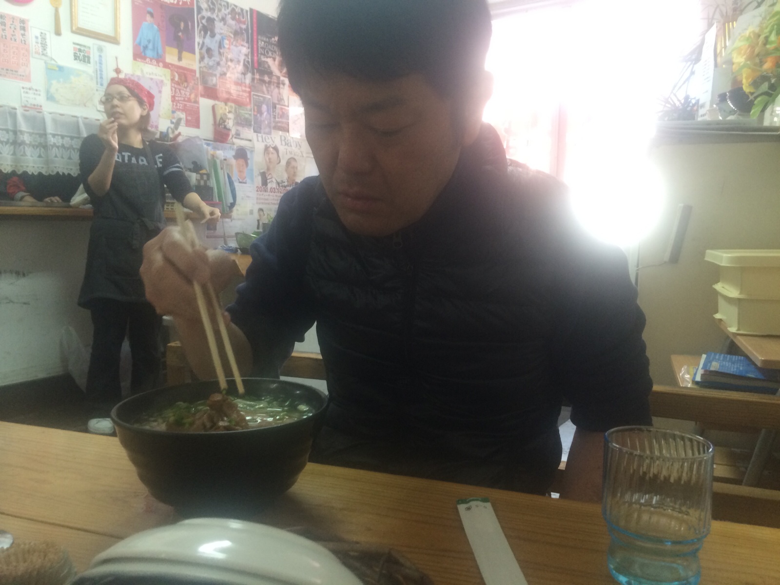 伊礼さん、そばを前に真剣に取り組んでいますw さとP