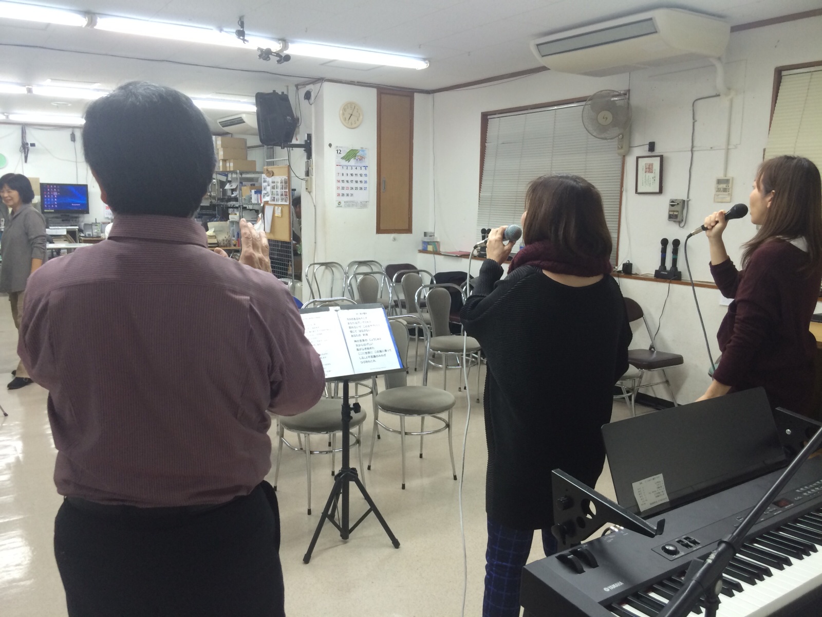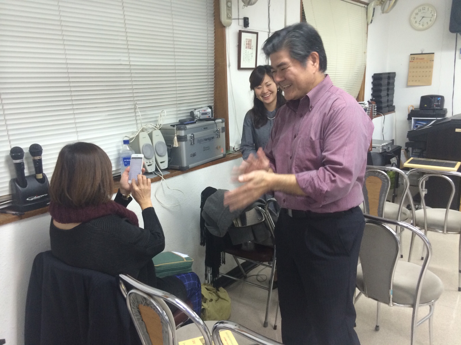 リハーサルを終えてクーラーを付けたところで克次さんから「クーラーをつけてクラクラ」のギャグがさく裂しました。いい感じです♪ さとP