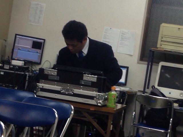音の調整をしている益川さん。 必死です! ゴスペルの集い