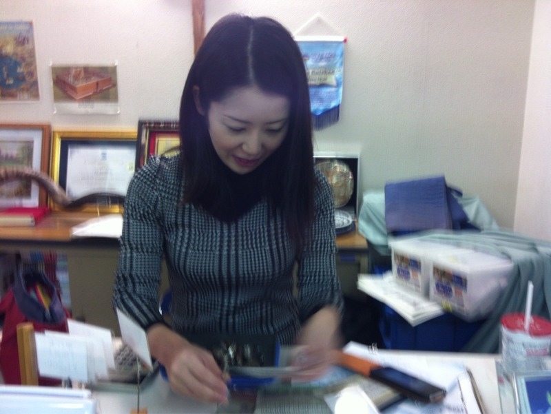 Mrs Noah Terumi is preparing camera will begin missionary overseas class. She is working hard on the staff of the meeting!