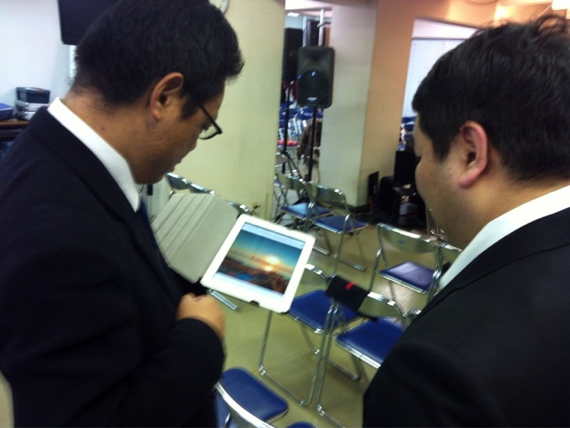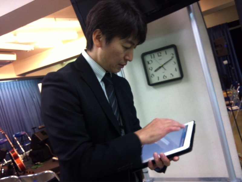 Messanger is paster Majikina, Guitar is David, Keyboard is ai-chan, Moderator is Evangelist Higuchi, PA is Evangelist Masukawa, OHP is Mr Tanaka, Worship leader is Israel Mariko. We are preparing meeting.