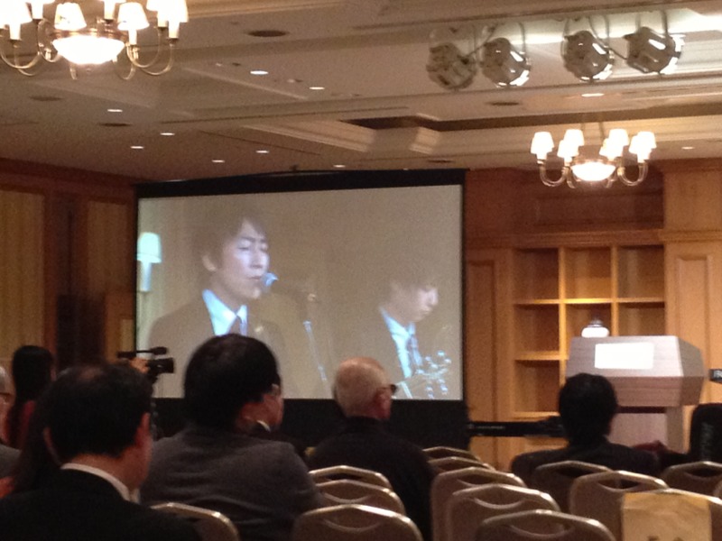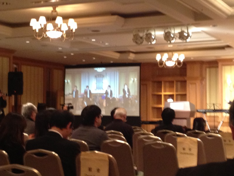 スクリーンの横で、、、なにやら、苦しそう? 設営のお二人。