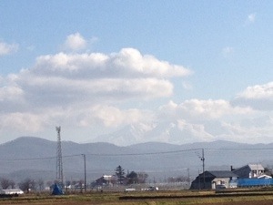 少し見えずらいですが、大雪山です。 すっかり雪化粧です。 標高2000m少々でが、本州の3000m級に匹敵すると言われています。