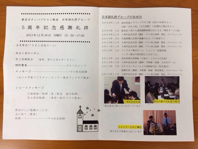 5周年記念礼拝のプログラムには、ミャンマーチームのことなども書かれています。