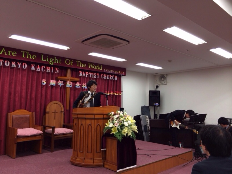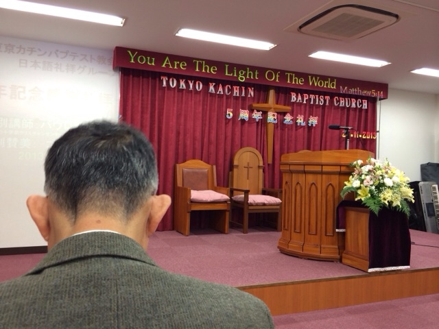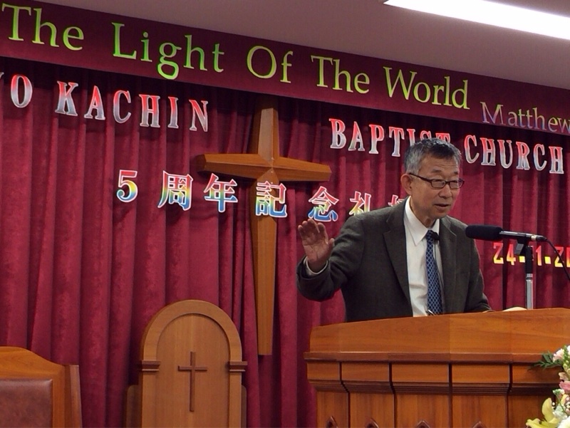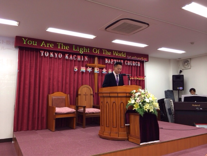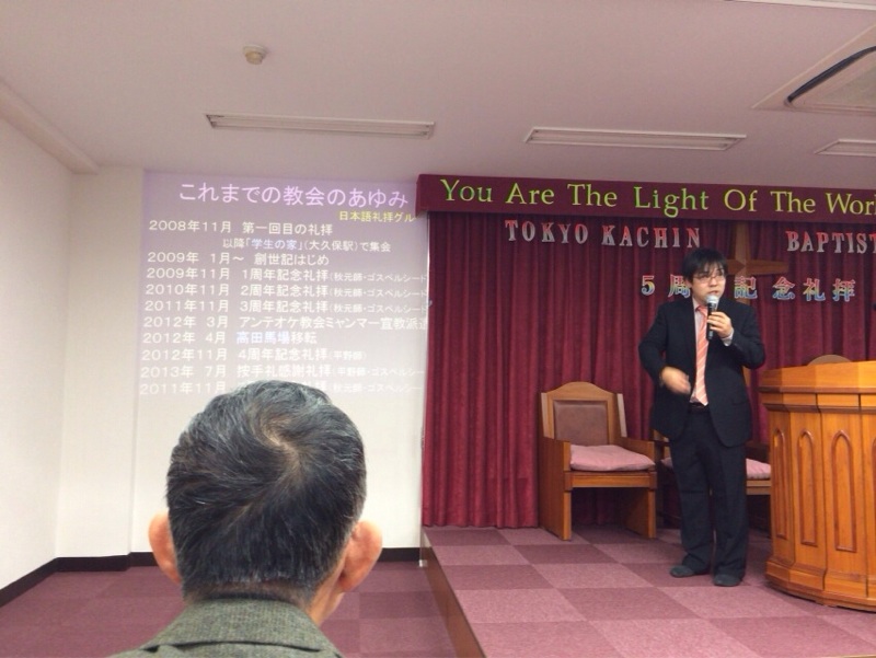 松沢先生が教会の5周年の流れをお話しされています。 東京カチンバプテスト教会も11月スタートなんですね!