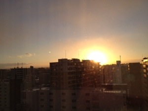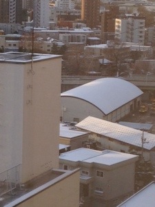 おはようございます。朝陽が見えます。 外は雪がパラついています。