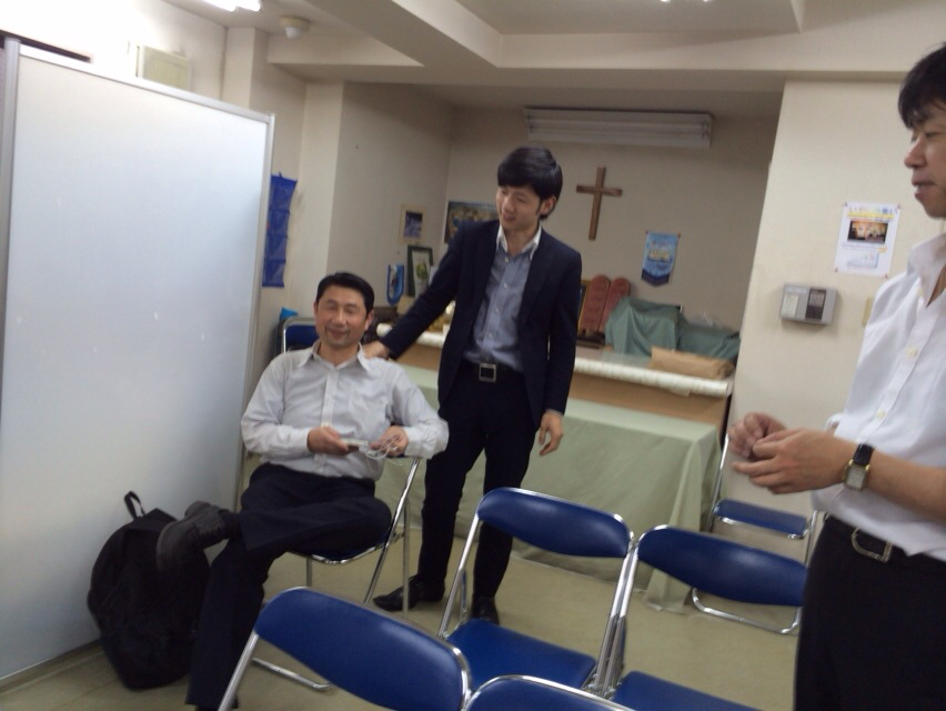 今日は祭日で、男子牧会学はお休みですが、漆間牧師、間違っていらっしゃったようです! ちなみに漆間牧師は千葉にすんでおられます。 お父さんをねぎらう息子さんのダヒデ君!