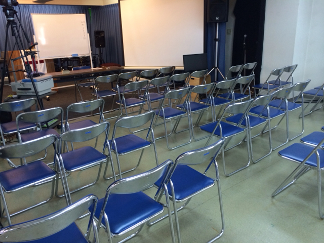 会堂、綺麗になりました! 椅子がキチンと並んでて、気持ちいい!