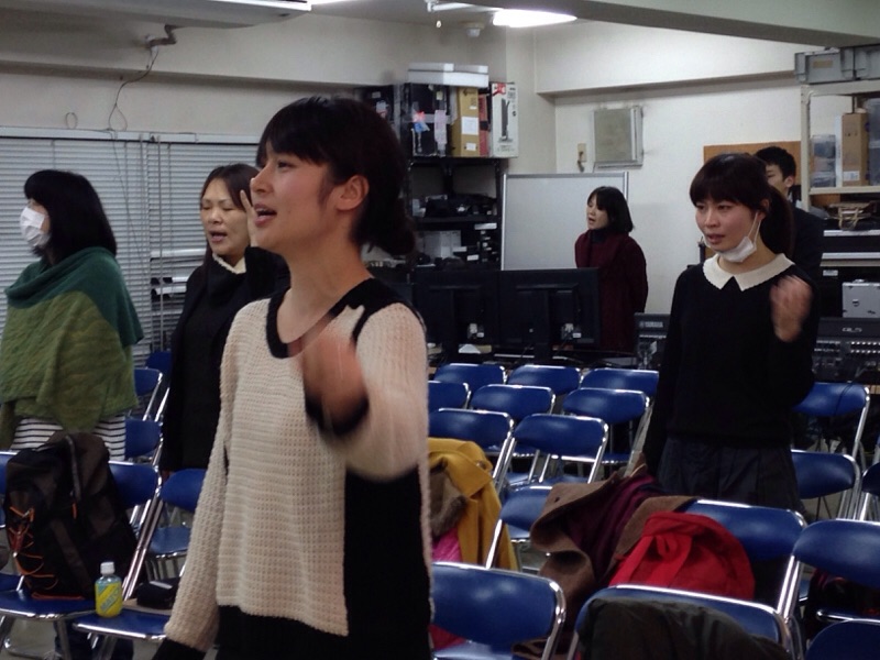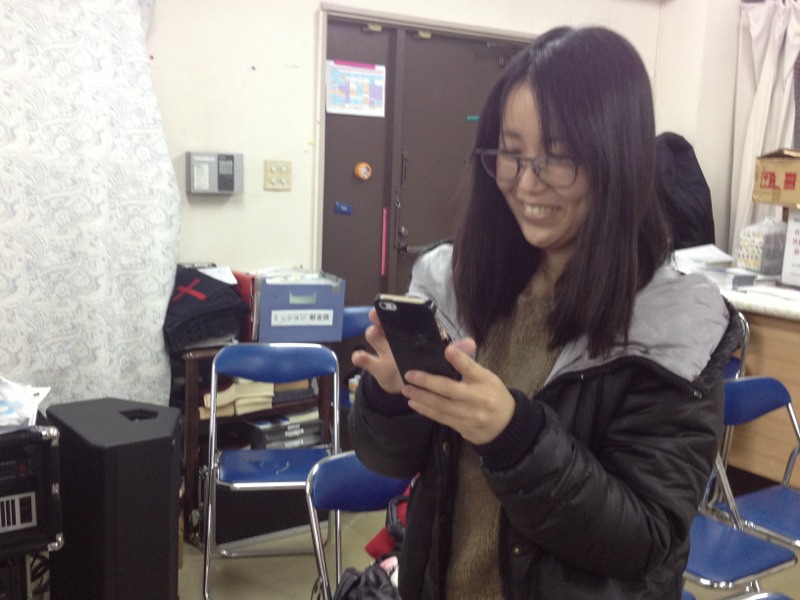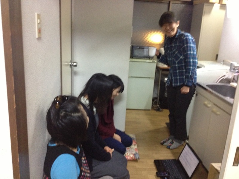 ラジオ録音のため、台所で陣取る?3人の女子たち!「ゴスペル風のひびき」はこちらから 優しく見守る加藤さん