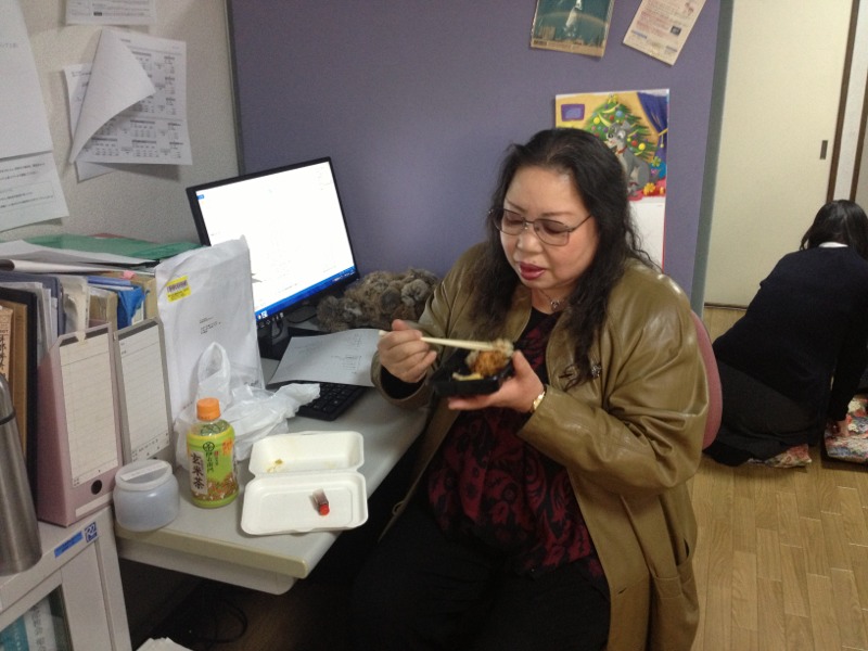 18時30分から始まる「いやしの集い」に向けて備えるまどかさん!
