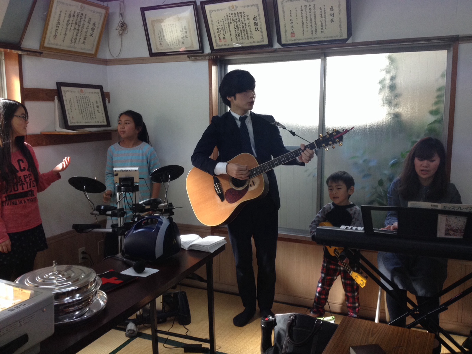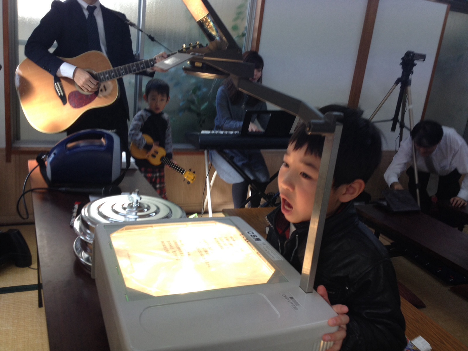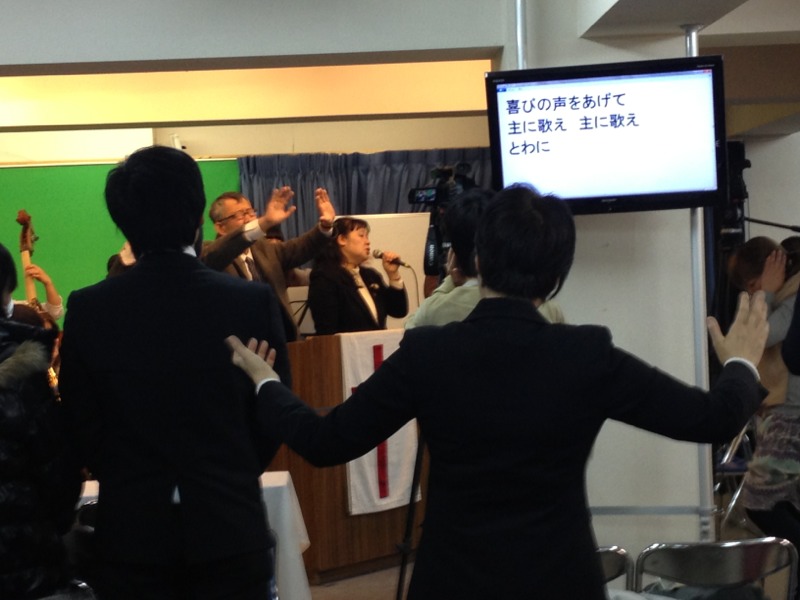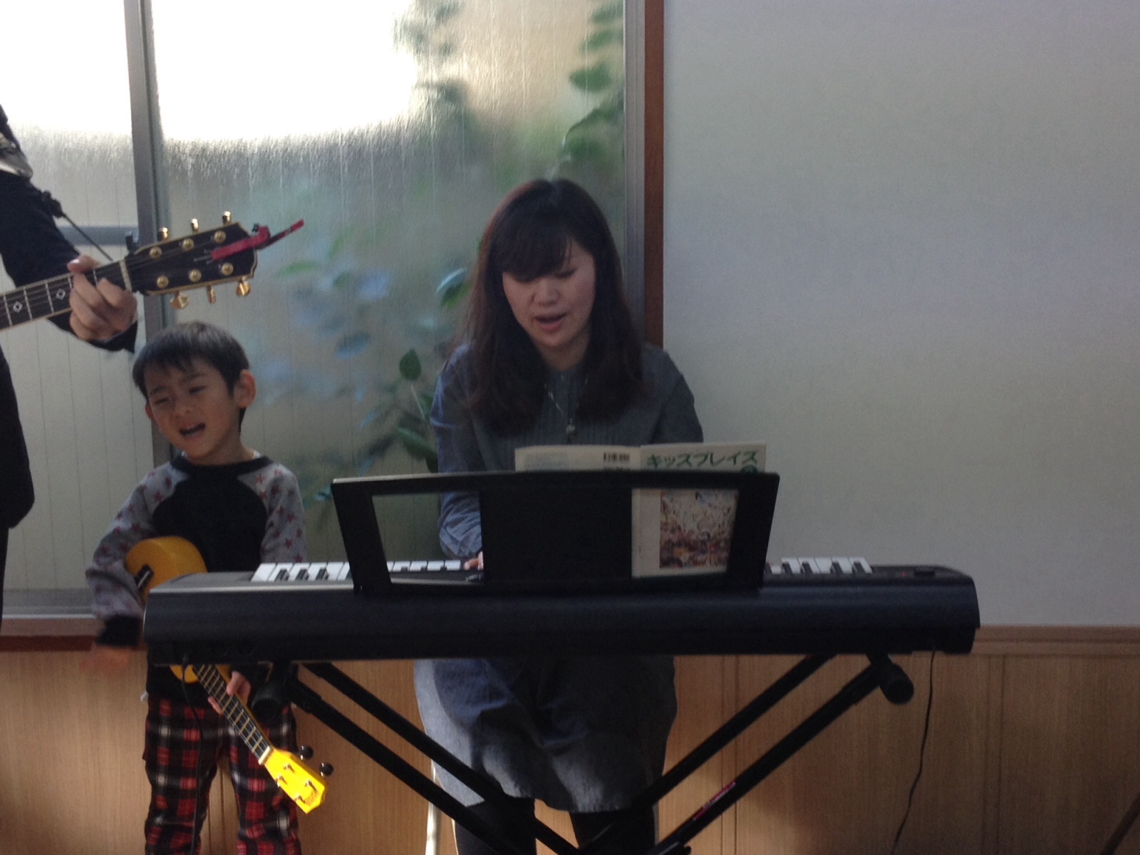 後半賛美。 子どもたちの奉仕体制もバッチリ! 奏楽はCSデビューのしょう子ちゃん。
