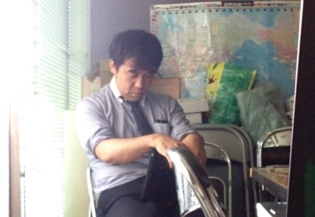お掃除後の会堂の様子! いつもお忙しそうなペテロ真境名さん、またまたお電話中です!