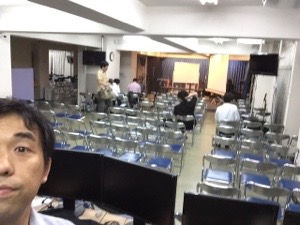 インターネット委員会の為に会堂へ。 メンバーの皆さん、続々とやってきました。