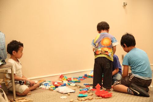 子供たちの部屋、こちらは学研のニューブロックで遊んで、みんなそれぞれの世界に没頭していました。
