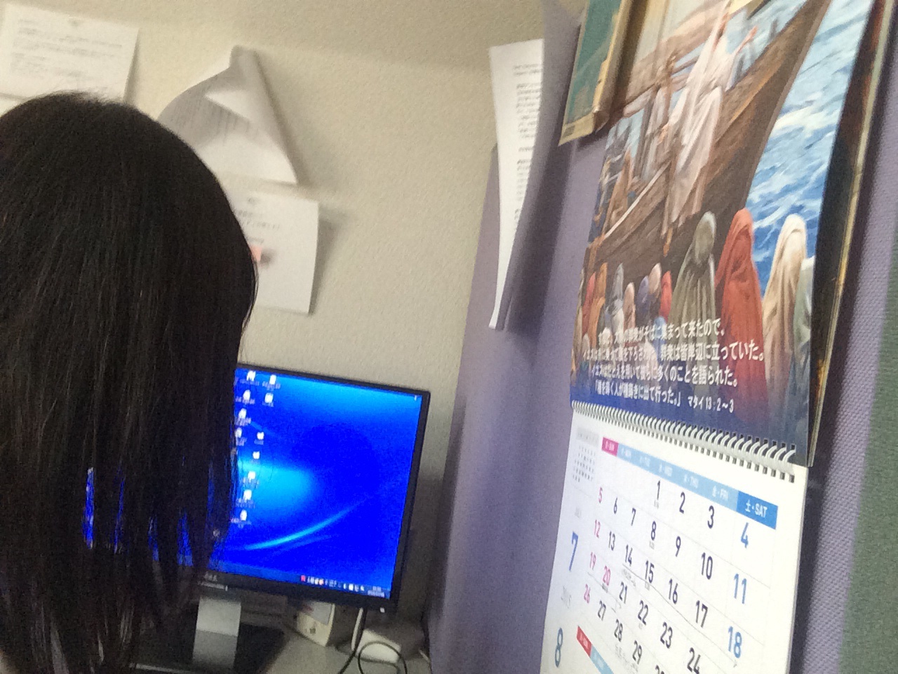 教会に来たメールのチェックをしています。 教会事務所にて〜 Kayano