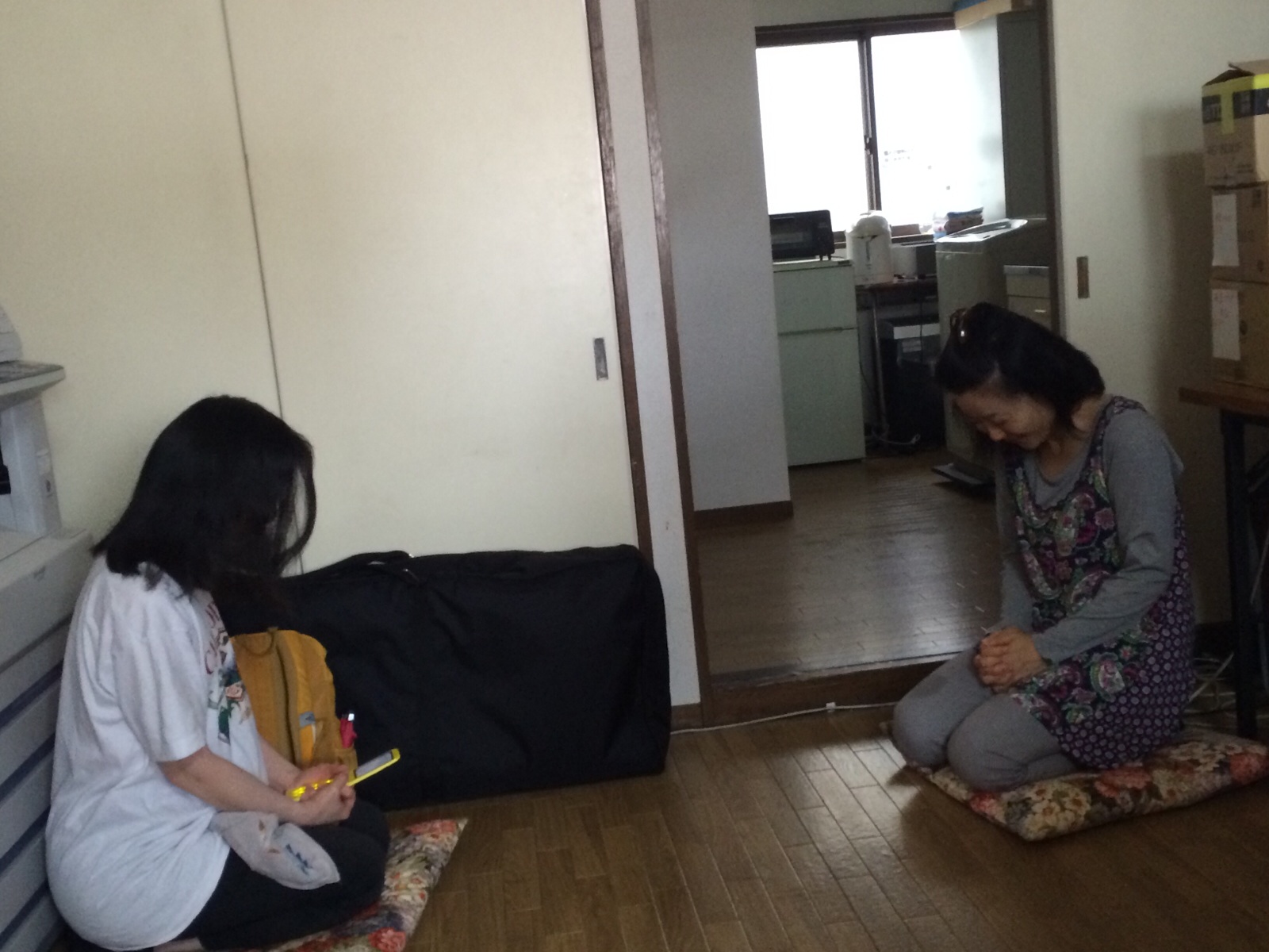 教会事務所では小林さんと山中さんがいらっしゃって、インターネットの為の祈り会が始まりました。 Kayano