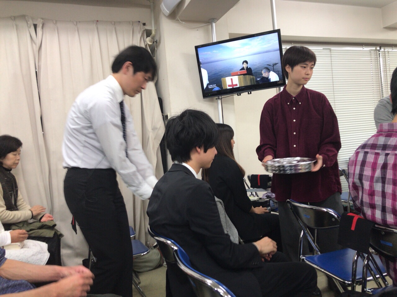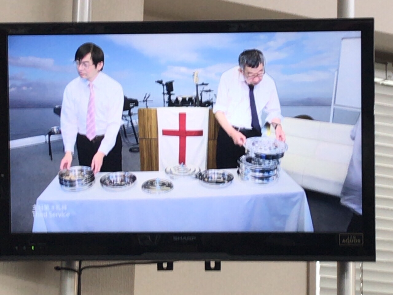 聖餐式をされておられるパウロ秋元さんと ペテロ窪田さん! 窪田さんは、中部の長老ですね!