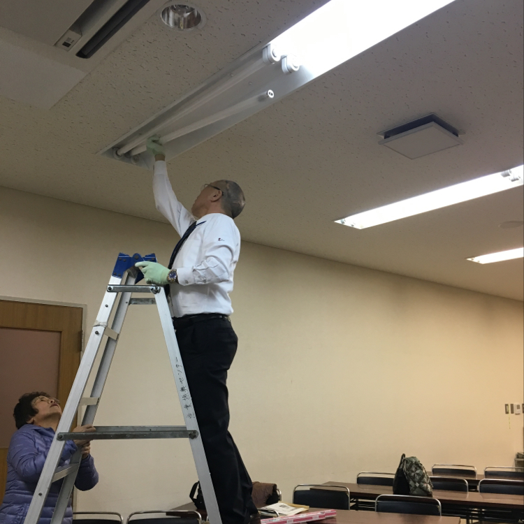 これから、松阪カリスマ聖会です。 今、準備中です。 蛍光灯を替えてもらっています。
