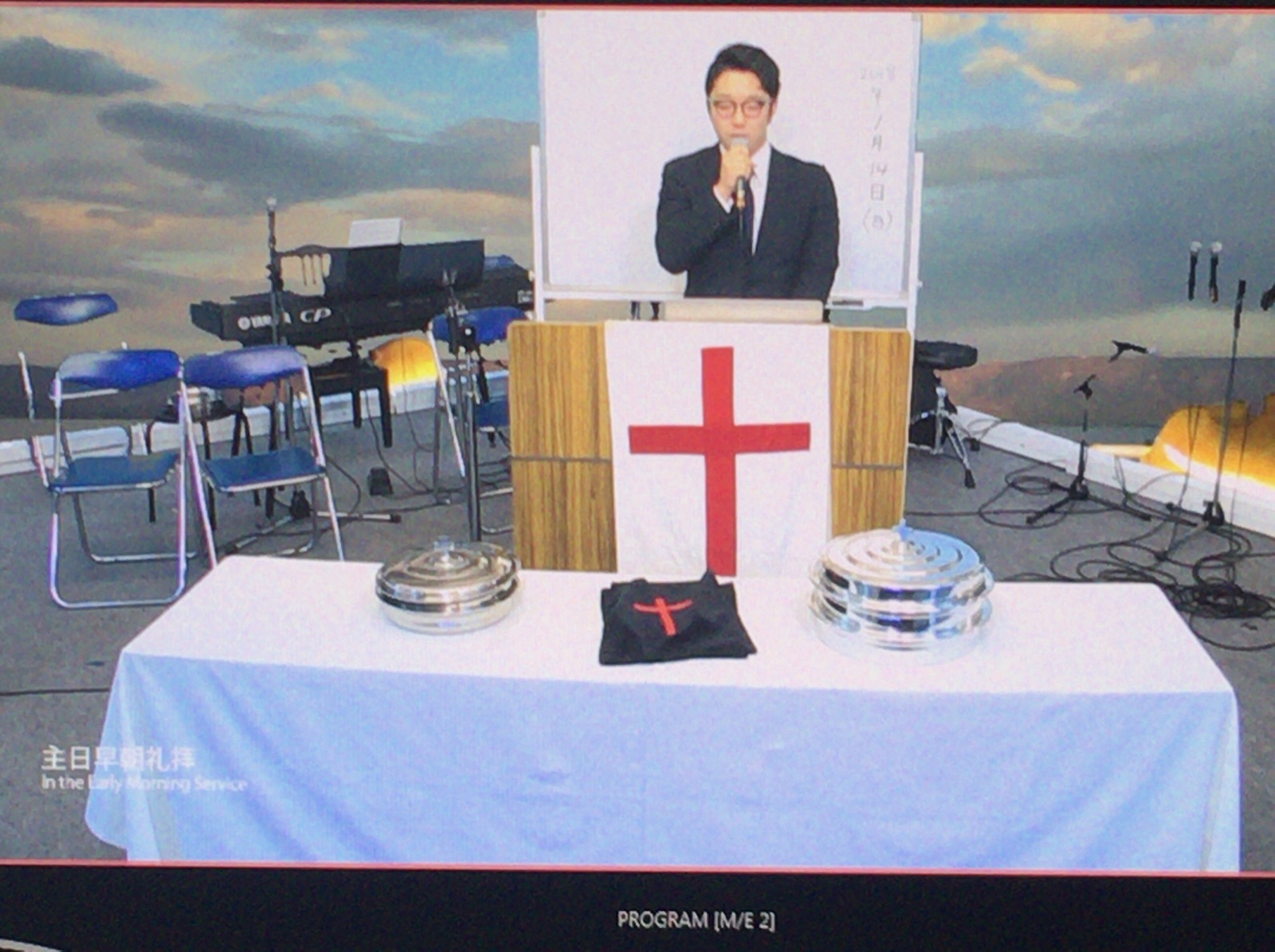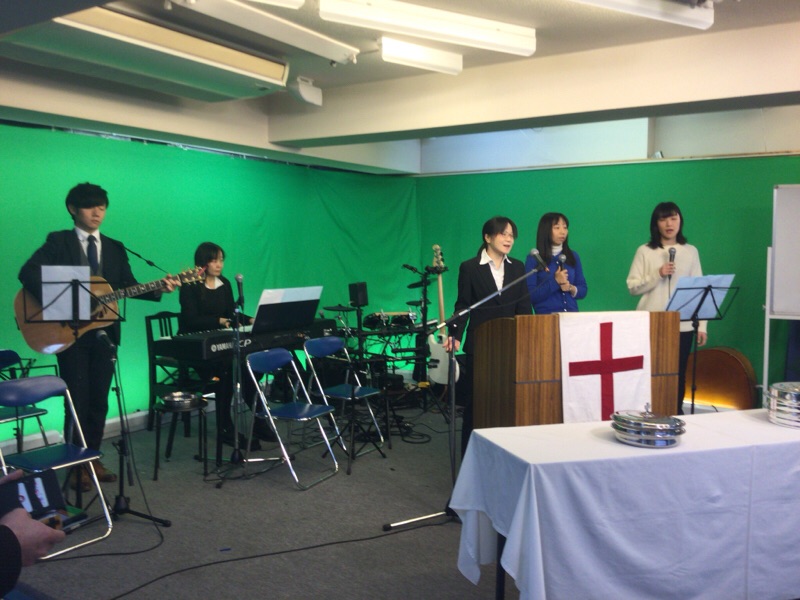 第一礼拝が始まりました。匹田さんの導きで、心から賛美を捧げています! 四日市