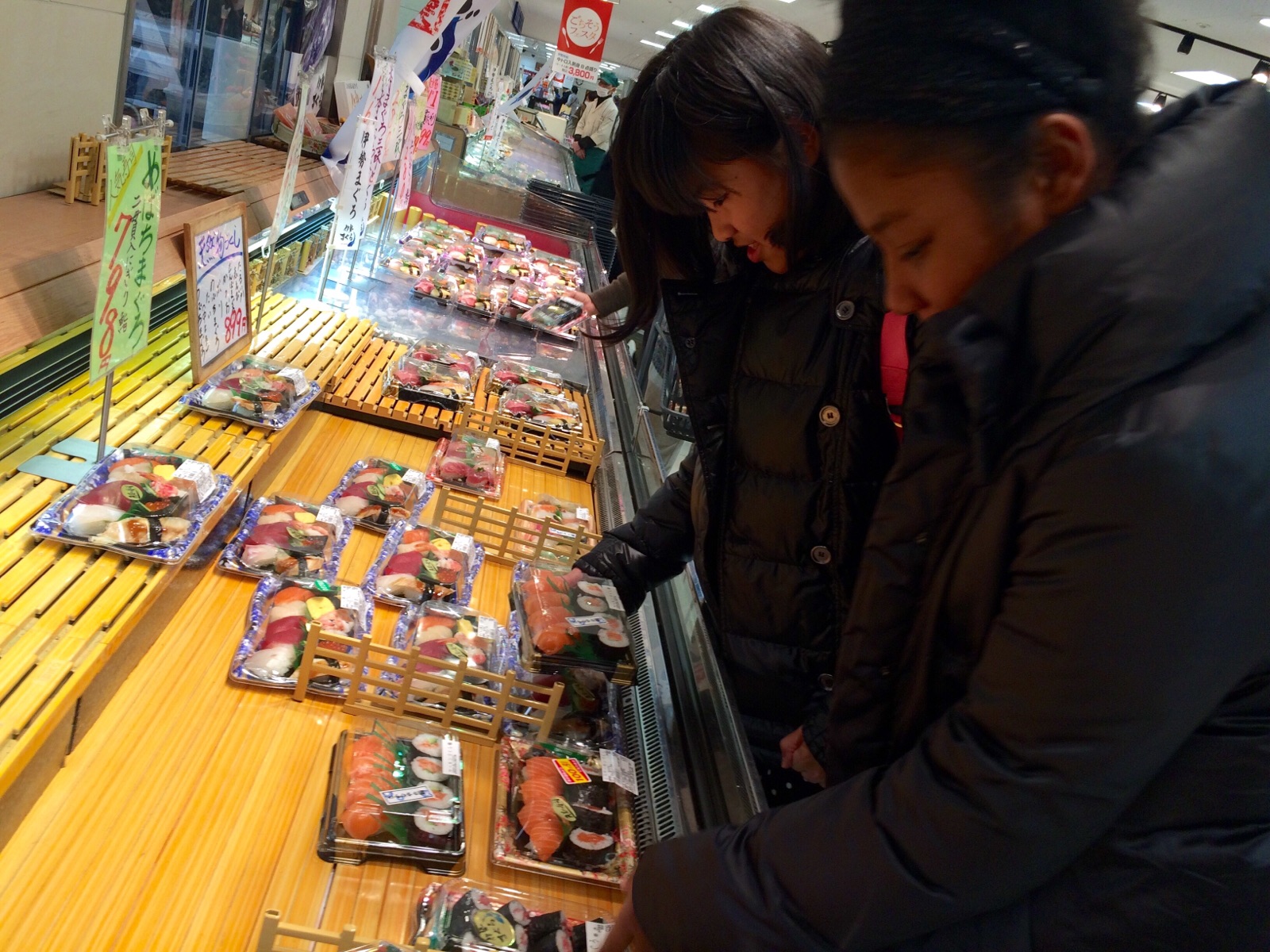 四日市到着! 近鉄百貨店にて早速夕飯を選んでいます。 四日市シオン教会