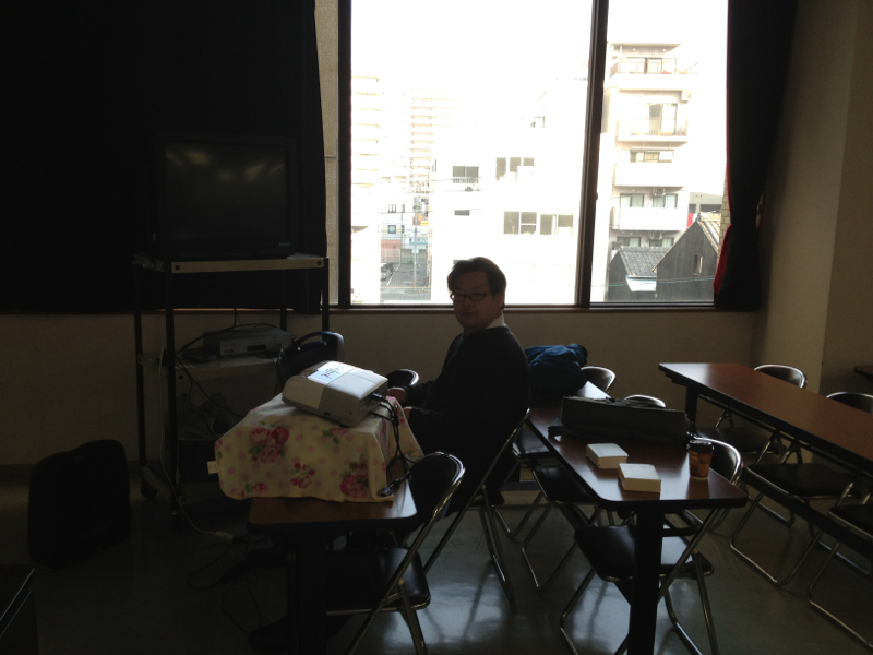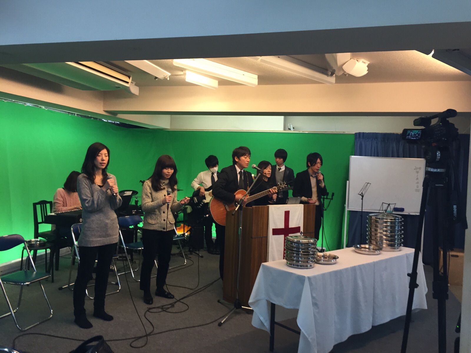 「みんごす」です。 礼拝前に、音の確認中。 名古屋