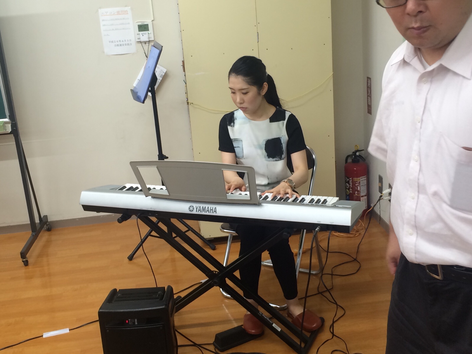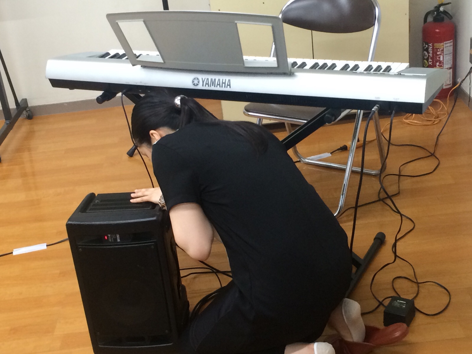エリサちゃん、奏楽の準備をしてます!松田さん、グッジョブ! 四日市