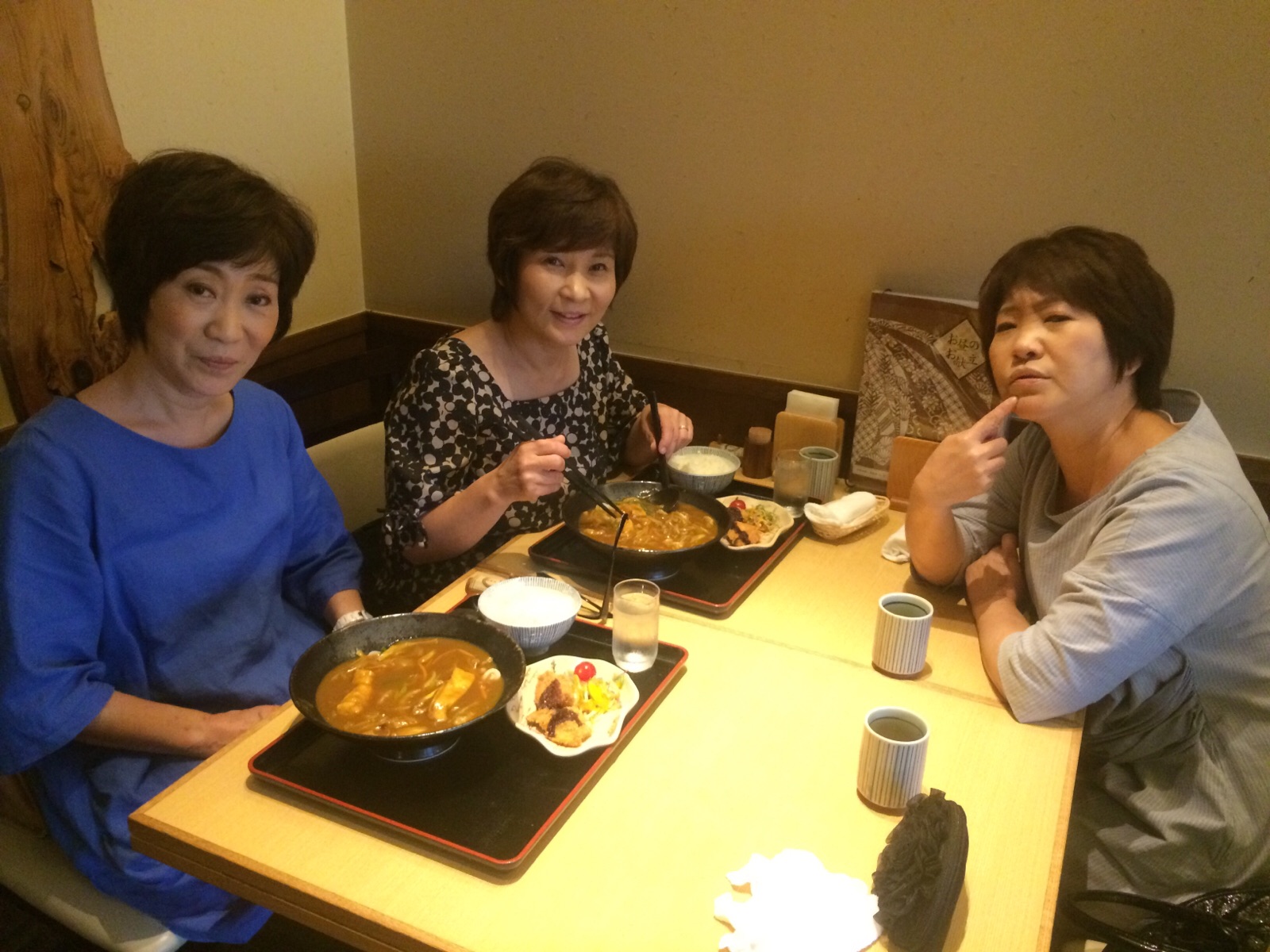 近くのお店でランチです。フィべさんと早苗さんは、カレーうどん。美味しそ〜。ちくみさんのは?まだ、お預け〜。笑 四日市