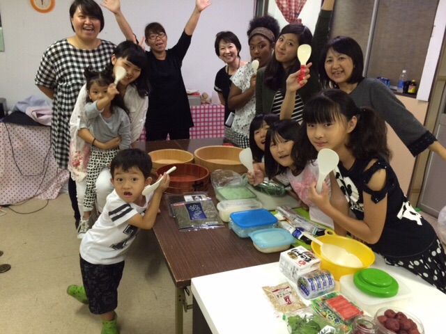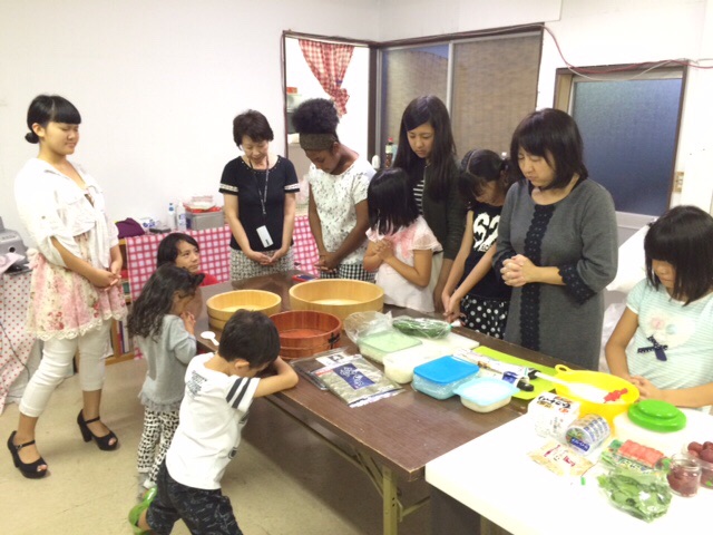 キッズナイト始まりまーす!お祈りして、スタート☆今日のメニューは、内田さんから教わった「梅しそ巻き」です♪ 四日市シオン教会
