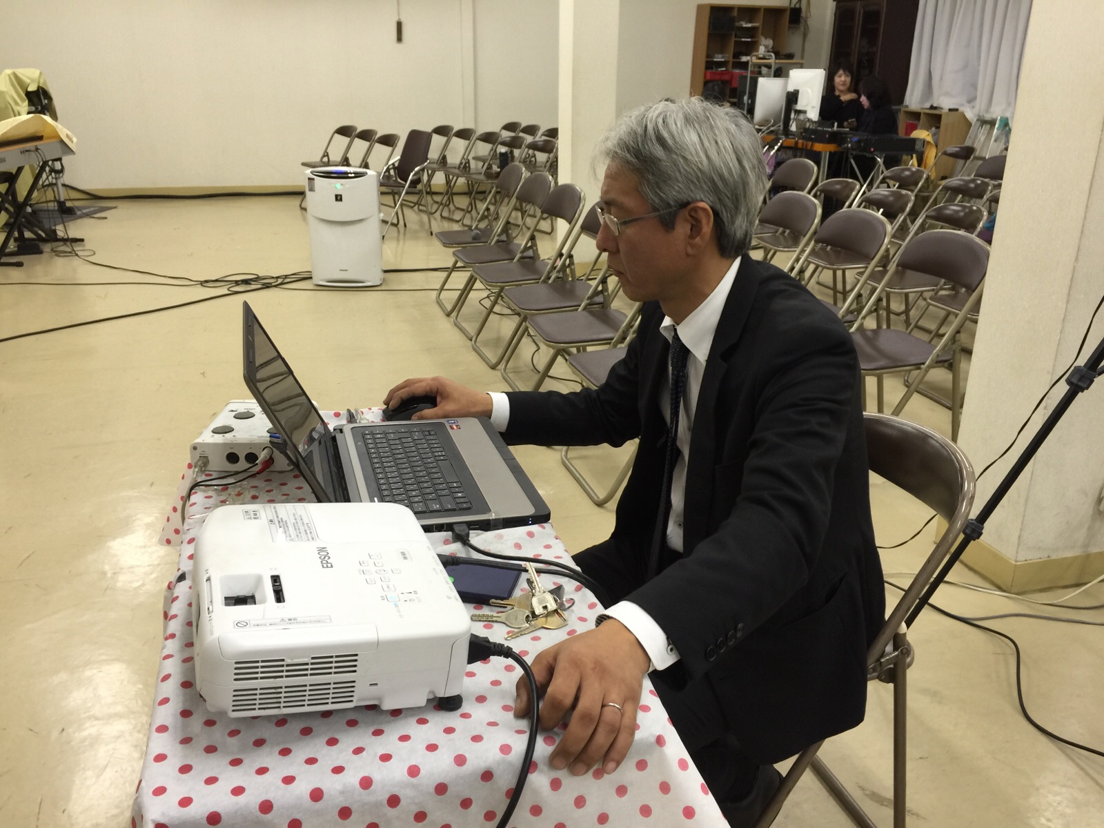 ピアノ、マイクの音合わせをしています♪