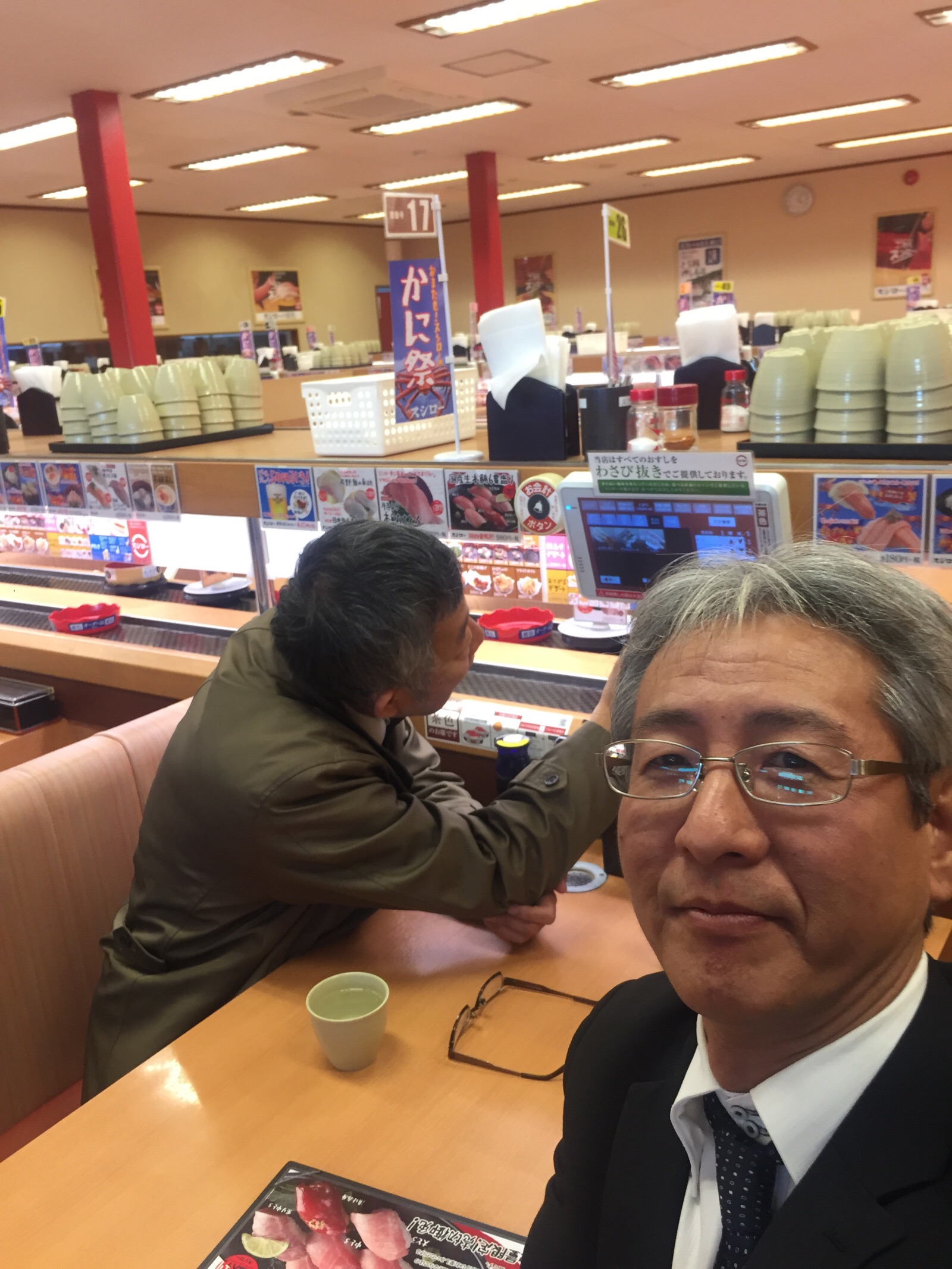 お食事です! いつものスシローです! 秋元さん注文中!早いです! 四日市 ヤマシタ