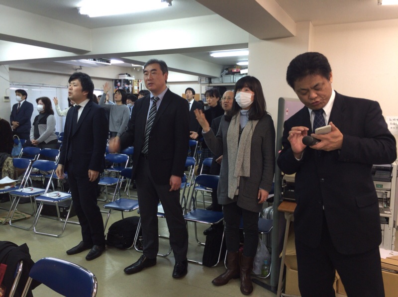 オーケストラのメンバーが備えの祈りをしています。 東京アンテオケ