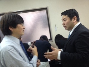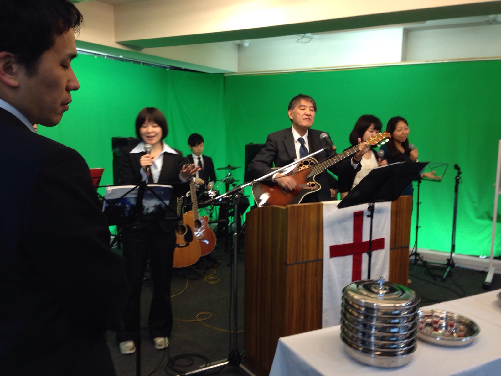窪田牧師と真境名牧師、今日のメッセージの打ち合わせ中です。