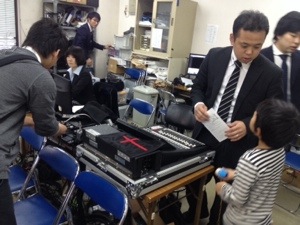 アメリカ帰りの設営樋口さん、PAと舞台を忙しく動いています。