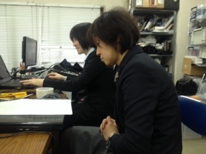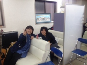朝のお祈り会から賛美している小代さん。チョット仮眠中でーす。
