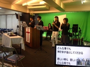 アメリカから帰国したばかりの米澤さんが賛美リーダーです。