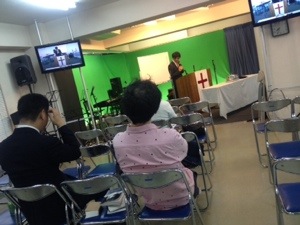 出西牧師のメッセージの時です。 メッセージ前の様々なアナウンスがされています。